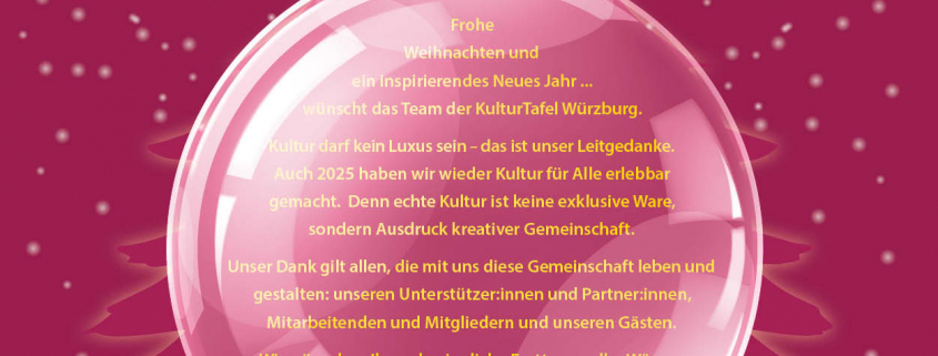 … wünscht das Team der KulturTafel Würzburg.